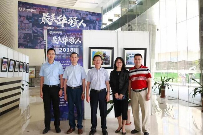 集团公司董事长张恒春在展览现场与工作人员合照